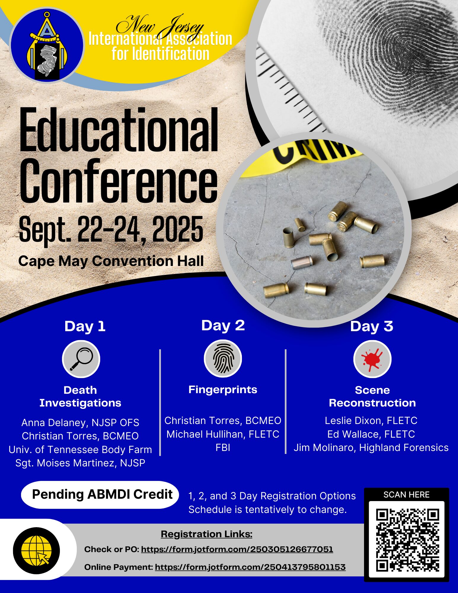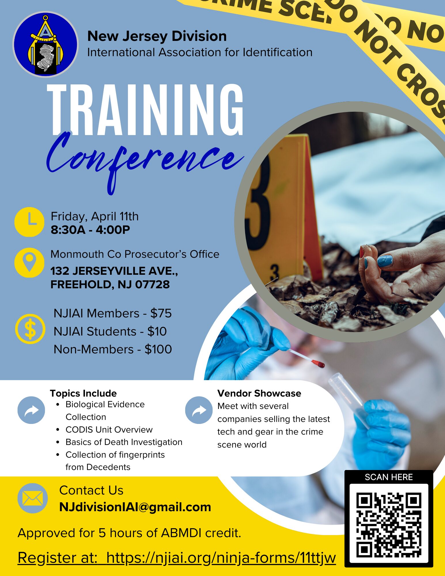 Welcome everyone to the New Jersey Division of theInternational Association for Identification’s website.