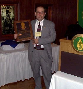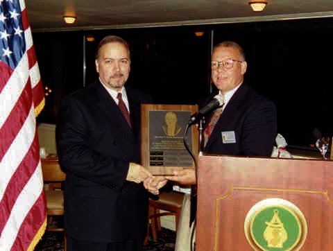 Lt. Jeffrey Thompson of the Ocean County (NJ) Sheriff ‘s Department displays the Paul Scully Service Award which was bestowed to him at the 1999 Educational Conference in Cape May. Lt. Thompson was one of the founding members of the New Jersey Division, I.A.I.