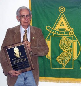 Forensic Specialist Jay Wallace of the Bridgeton Police Department (Ret.) is shown with the Paul F. Scully Service Award which was presented to him at the 14th Annual Educational Conference held in Cape May, NJ, October 22-25, 2000.