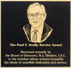 At the 1998 Educational Conference in Cape May, it was decided that an award be established in honor of the Division’s long time Secretary/Treasurer, Paul Scully. Paul had passed away the previous July after a long and painful illness.